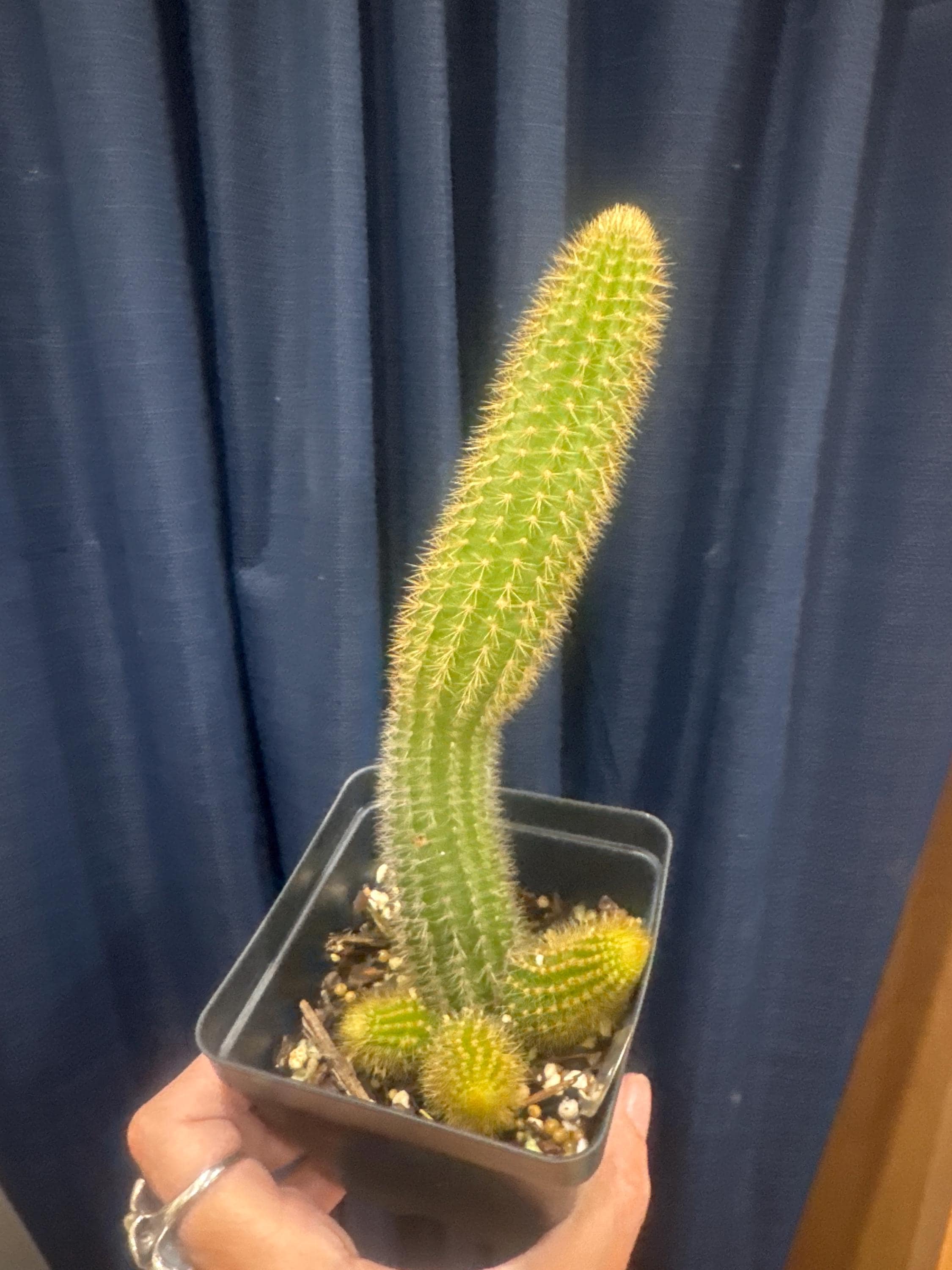 We are offering beautiful ‘Traisengluck’ Hildewintera. We have an 8” tall plant with three pups! It has gorgeous golden spines and is ready to grow for you! Comes with its aluminum tag.