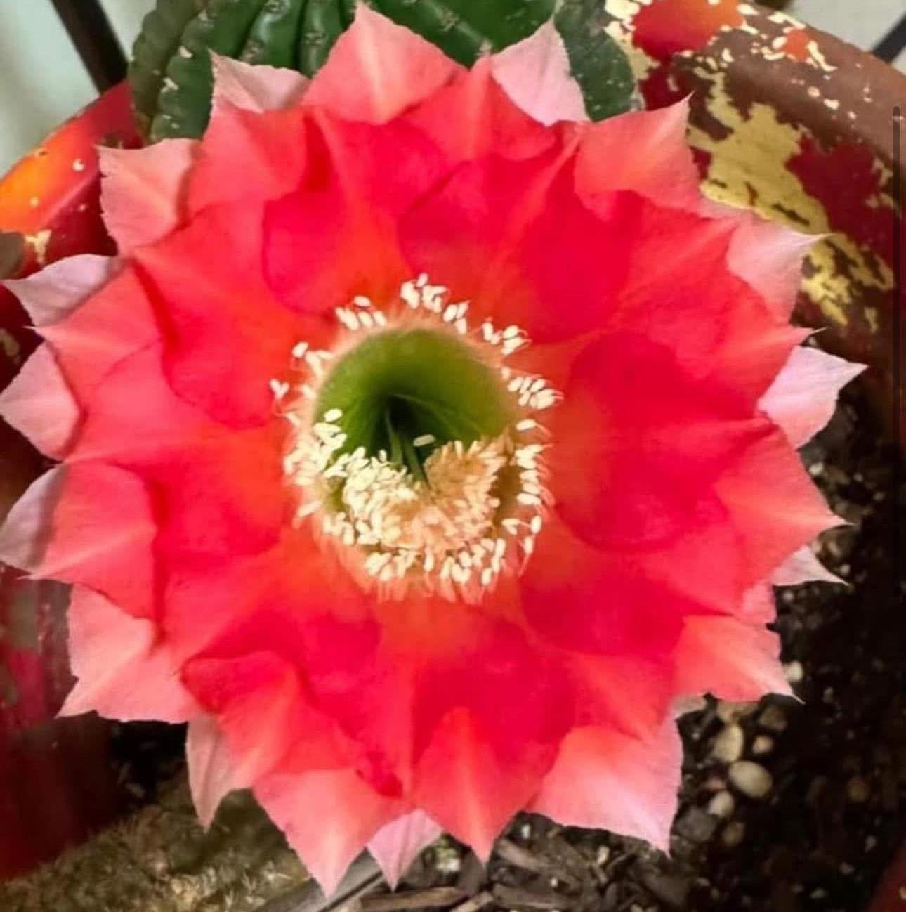 Echinopsis are very easy to grow. Simply plant in well draining soil....water when dry and fertilize often. They will reward you with many flushes of blooms once mature. A very exciting experience watching such extraordinary blooms emerge from such a simple looking cactus! Worth the wait!