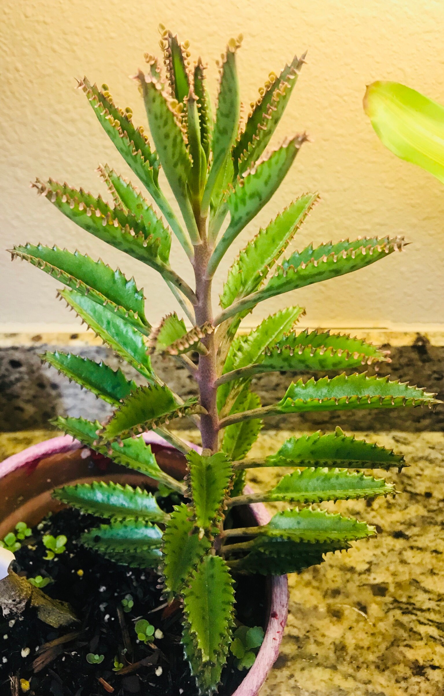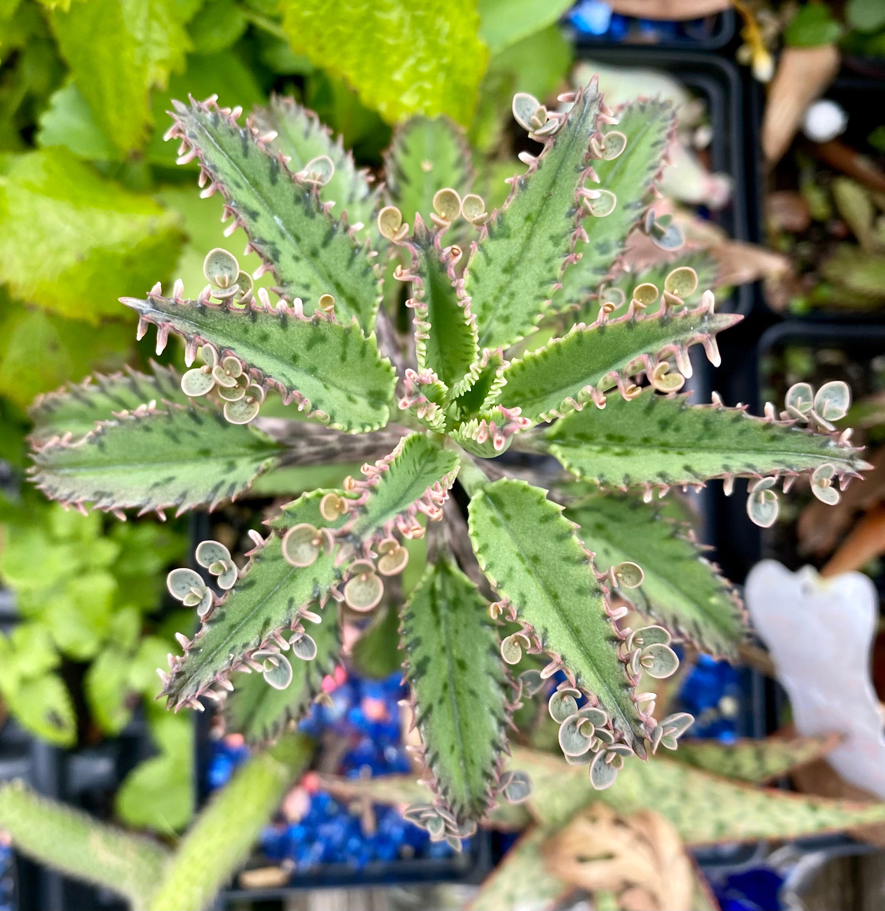 The alligator plant has interesting jagged and pointed "leaves" with eye-catching details. At the end of these "leaves," you will note tiny leaflets. These leaflets fall off creating new plants hence the nickname "Mother of Thousands." This plant is great to naturalize certain cactus garden areas. Do note that if you plant it too near other plants, you will see that its babies like to hop into other containers and grow.