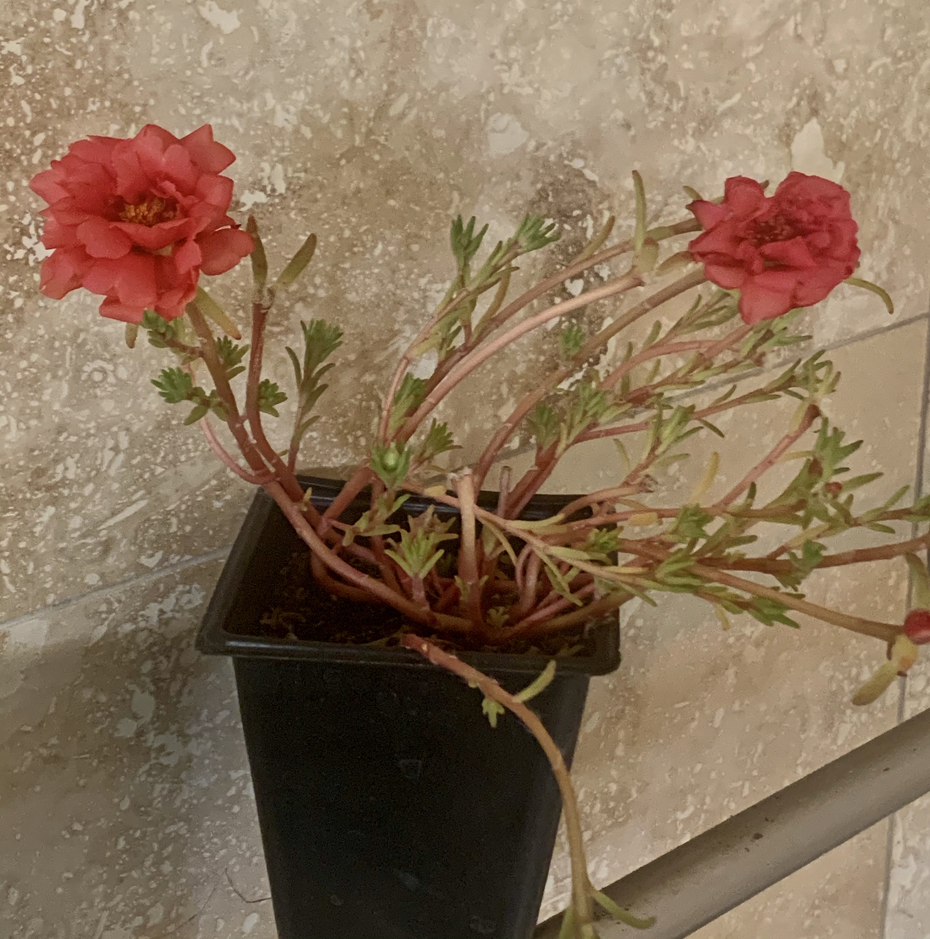Summer is here! Time to stock up on your purslane and portulaca for the warm months ahead! This one boasts beautiful scarlet flowers. Portulaca will bloom prolifically and requires little watering. As a matter of fact, they start to look bad when it rains too much. Heat and sun lovers!